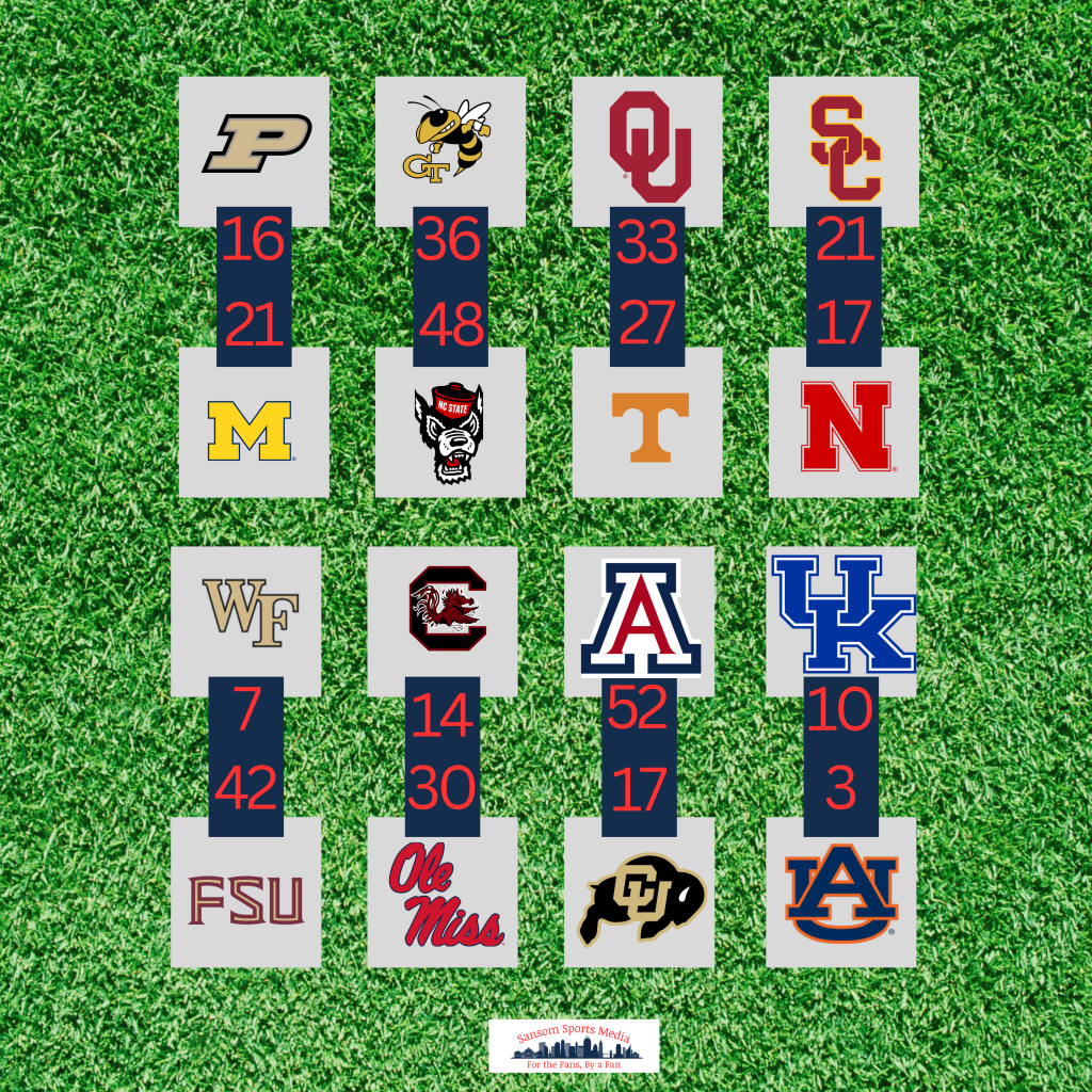 | Bubble | Oklahoma Texas Vanderbilt | Michigan USC | Georgia Tech Louisville Miami (FL) | Texas Tech Utah Cincinnati | Navy North Texas South Florida | Notre Dame |