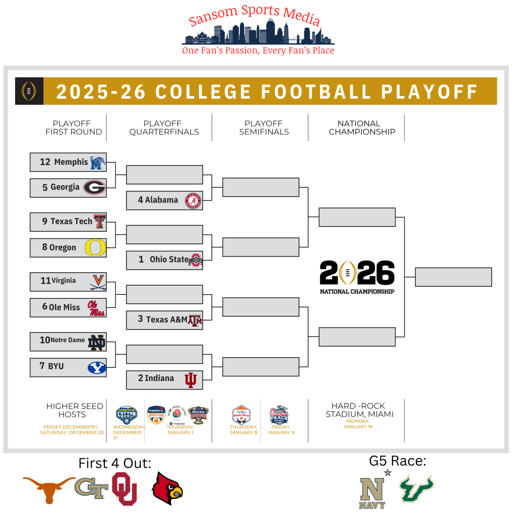 | Playoff Frontrunner | Texas A&M Alabama Georgia Ole Miss | Indiana Ohio State Oregon | Virginia | BYU | Memphis | |