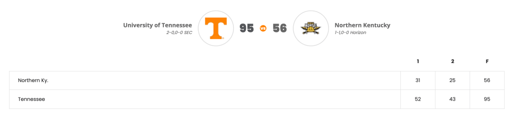 - This game went exactly how it was supposed to, all credit to Tennessee for executing their game plan and taking NKU seriously before moving ahead. We’ve seen too many highly rated teams look well ahead rather than taking it one game at a time this week.