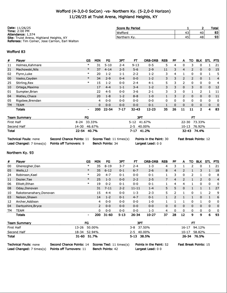 NKU 93, Wofford 83