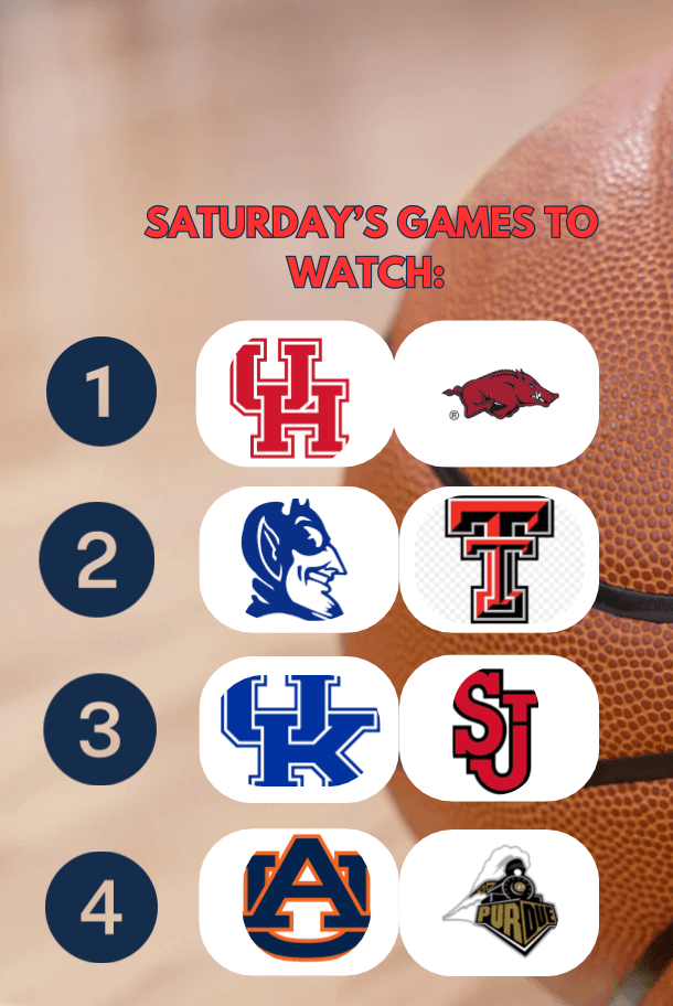 5️⃣ Houston vs. Arkansas | 5:30, CBS | Prudential Center, Newark, NJ