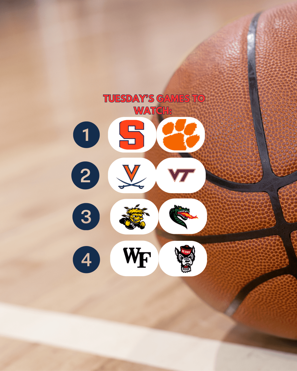 4️⃣ Wake Forest @ NC State | Noon, ESPN2