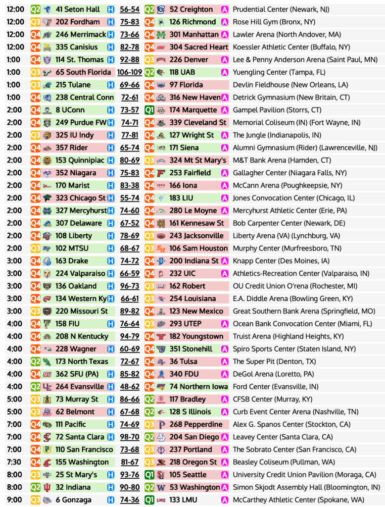 UAB and USF played an electric, high scoring affair that required 2 OT’s to settle. Chance Westry led UAB with 24 and had 6 assists to just 2 turnovers. However, Wes Enis for USF poured in 36 points in the losing effort. Neither team is currently in the tournament picture, however, both are vying for position in the American!
