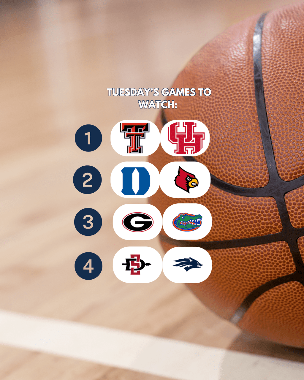 Tonight is Headlined by Duke/Louisville, Texas Tech/Houston and Georgia/Florida, but there are awesome matchups everywhere!