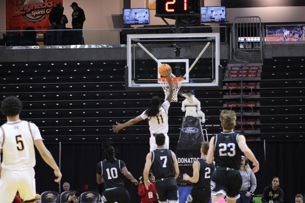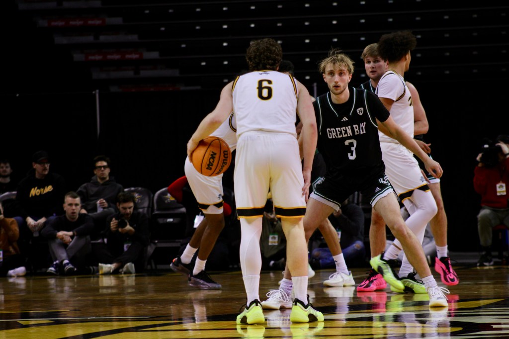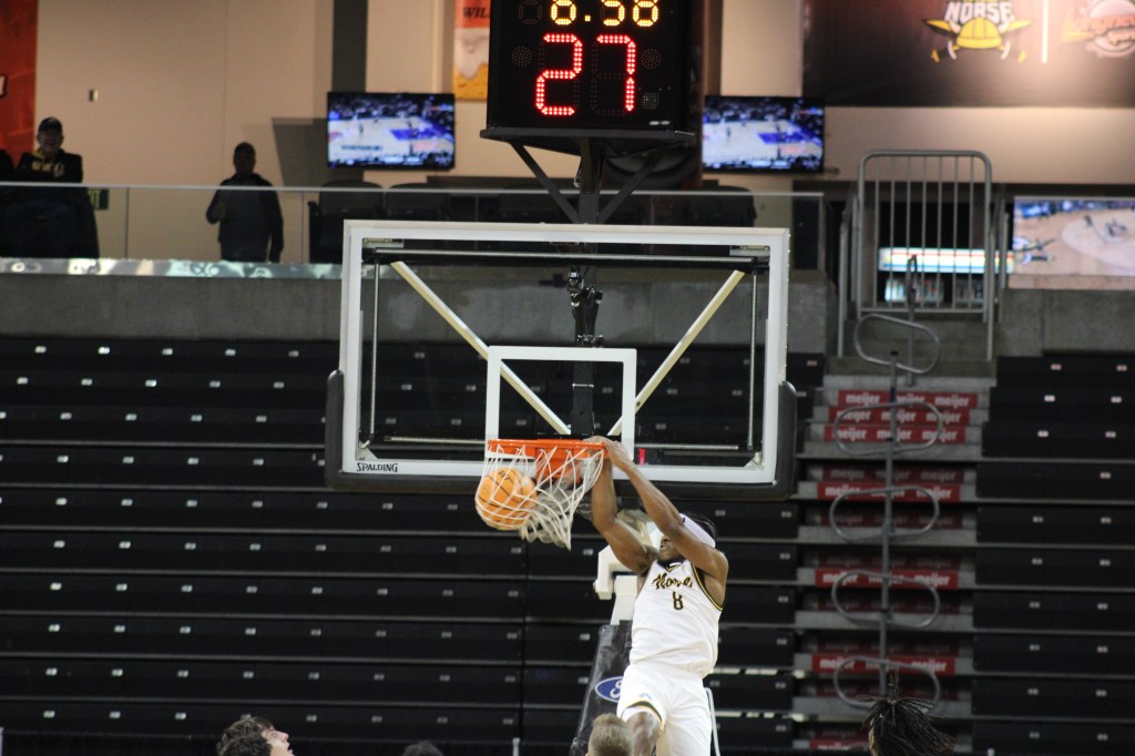 Donovan Oday and Tae Dozier carried the load, both finishing with 20+ points. NKU actually grabbed a late 3-point lead, but Green Bay’s Marcus Hall (#13) buried a triple from the top of the key after the Norse failed to secure a defensive rebound.