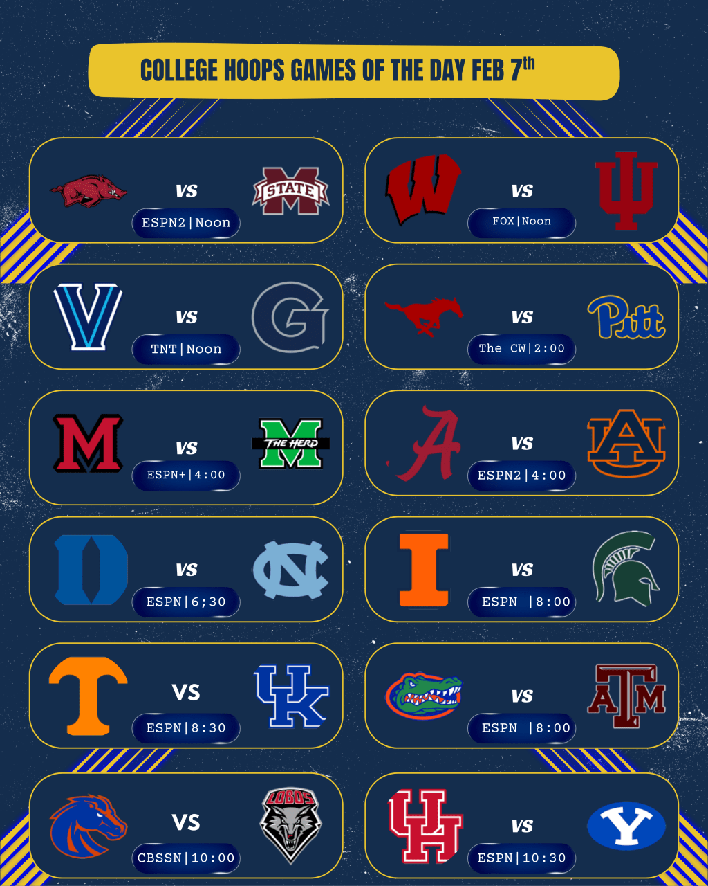 - Houston @ BYU | 10:30 PM, ESPN The Flemings/Dybantsa matchup is intriguing. Houston is favored by 1.5 in the Marriott Center. Projected Seeds: Houston (2), BYU (5).