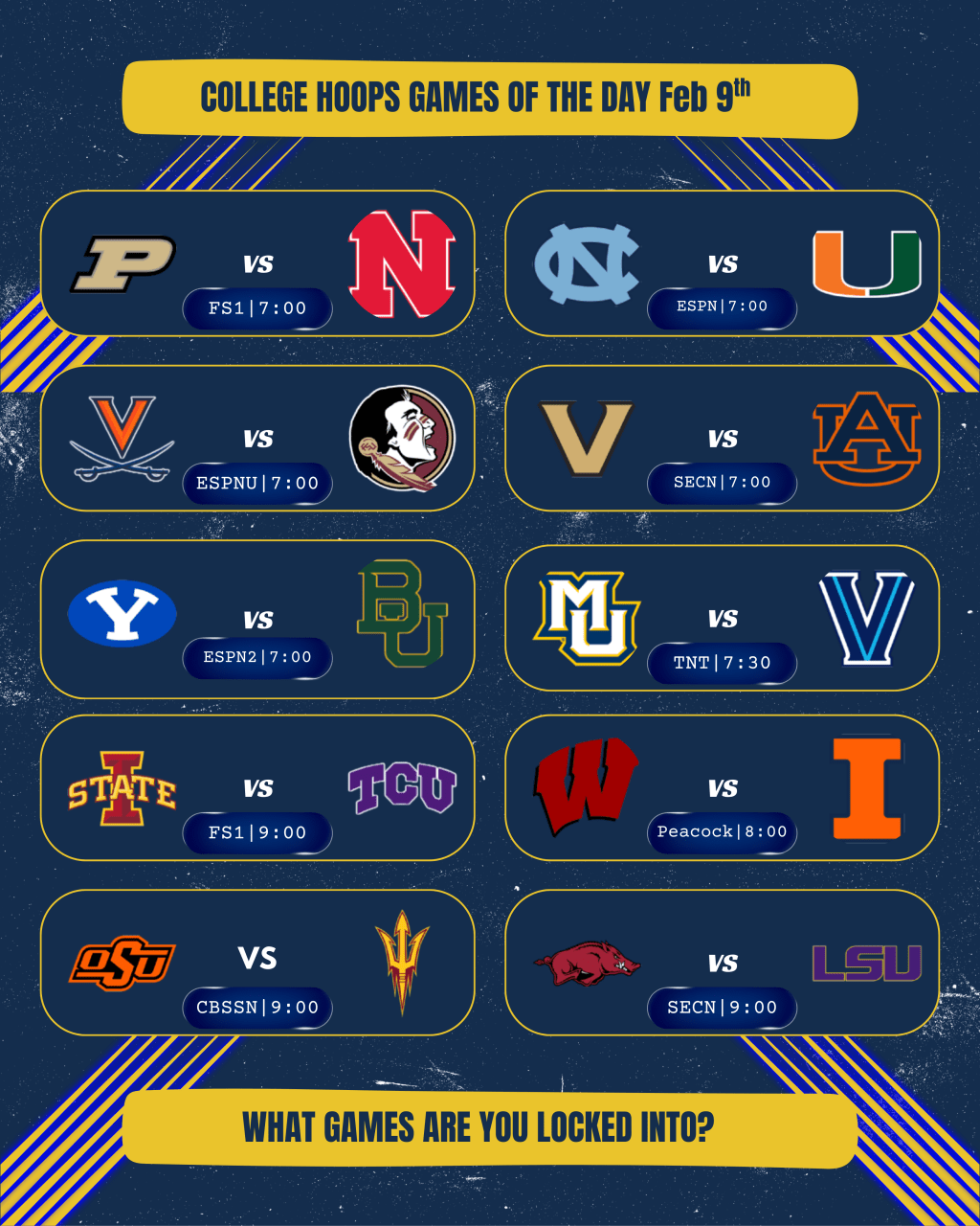 UNC @ Miami (FL) | 7:00, ESPN