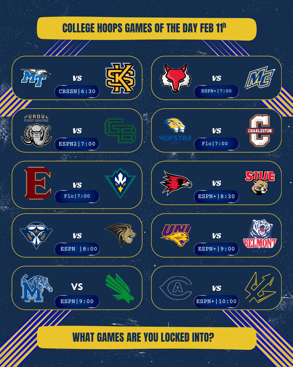 Game of the night! UTM is 11-3 and heads into Saint Charles to face off with 9-5 Lindenwood. This one should be a war. I’ll be tuned in, and highly recommend you do the same!