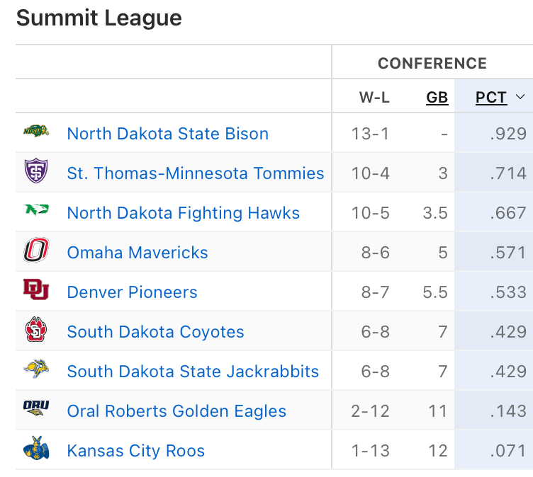 Just the one matchup tonight. Omaha is in Vermillion tonight to try and climb up towards the top three. South Dakota is looking to claw up towards Denver and the top 5. Tip at 7:00 on CBSSN