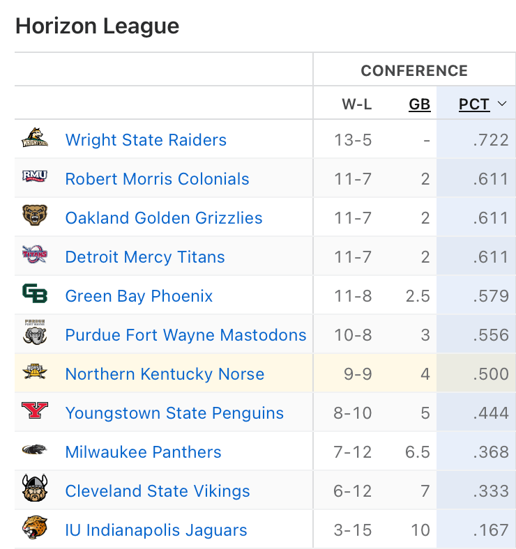 NKU @ Cleveland State – more on Valhalla Voice! If NKU doesn’t win out, they will not be getting a home game in the first round.