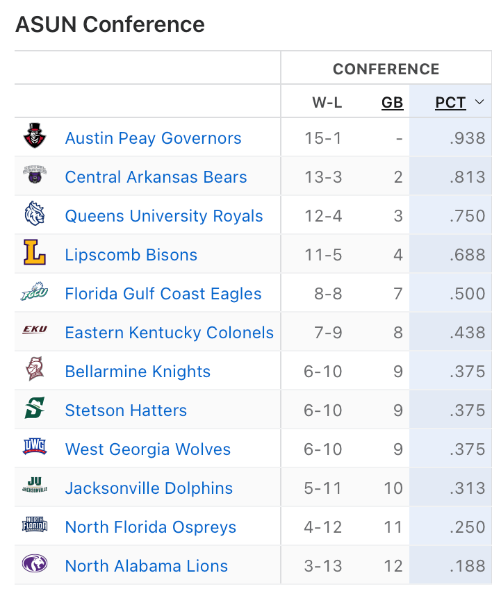 Lipscomb travels to West Georgia with hopes to continue fighting in that second tier of the conference. Queens is in Richmond to take on Eastern Kentucky in a toss-up that promises a ton of points. Central Arkansas is in Clarksville to battle Peay in a critical game in that race for 2nd (Peay has the top spot wrapped). Finally, North Alabama will look to get out of the basement at home vs. Bellarmine.