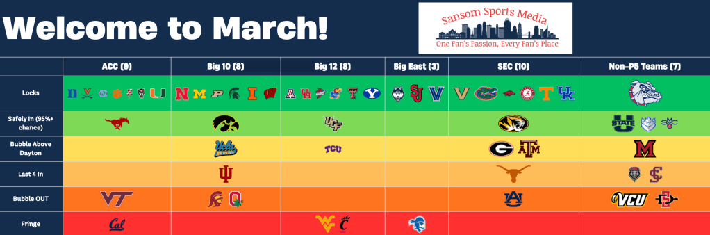 - Cincinnati – 91-68 win over OKST. The Bearcats are close to the next 4 out at this time. There is still a (SMALL) chance they could make it