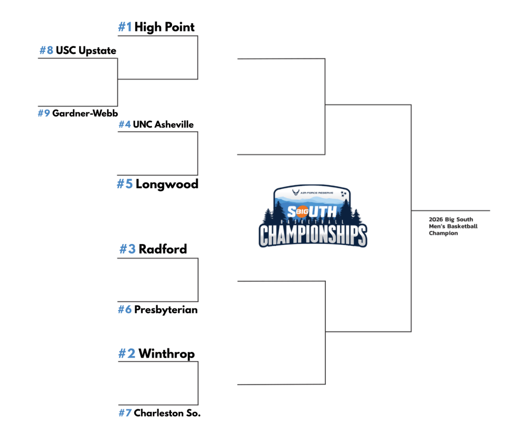 - This tournament really gets going today! High Point gets Gardner-Webb to start the day. Expect a blowout. After that though, the other 3 games should be close. Winthrop is 4.5 point favorites over Charleston Southern at 2:30, Longwood is 1.5 point favorites over UNC Asheville at 6:00 PM, and Presbyterian and Radford finish the night with Radford being 1.5 point favorites. All games on ESPN+!